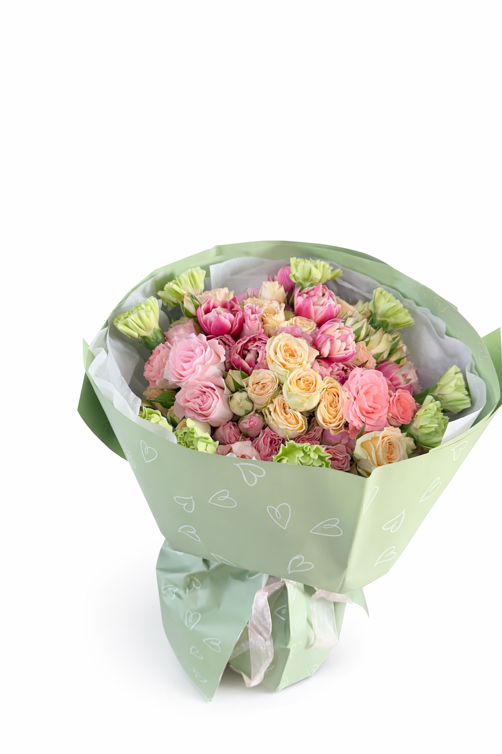 A red heart-shaped box filled with white roses, about 20-25 pieces. (You can choose a different color of roses if…